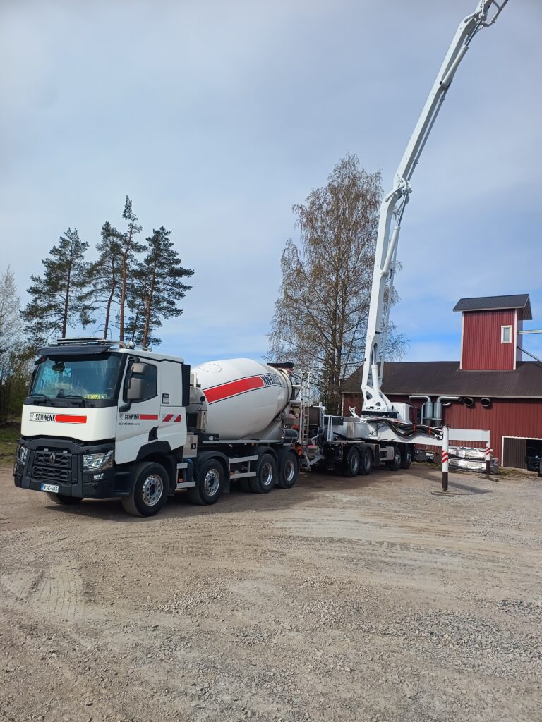 We use our own versatile transport and pumping equipment, which enables us to build a cost-effective solution to the customer's needs. The reach of our pumping equipment is up to 51m and the capacity of the transport equipment is up to 12m3 per load.